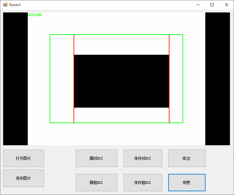 直接在界面上点击“打开图片”->“画线ROI”(默认位置我都调好了,你也可以自己调整大小、位置)->“抓边”,过程如下: