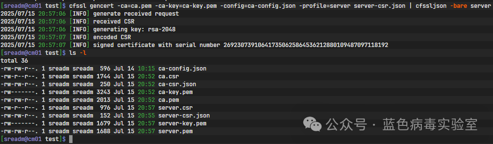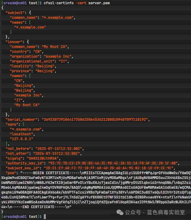我们可以使用cfssl-certinfo工具来查看生成的证书信息.cfssl-certinfo -cert server.pem