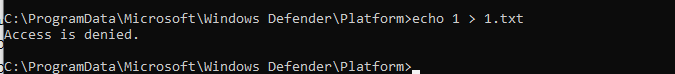 Windows Defender 始终阻止将文件写入其运行文件夹,“ Platform ”文件夹也不例外。