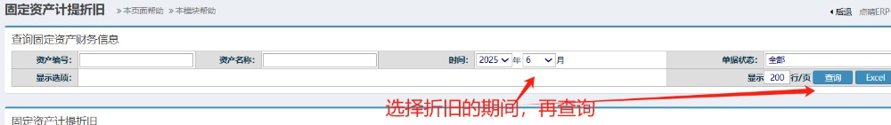 选择要折旧的期间,再点击查询按钮