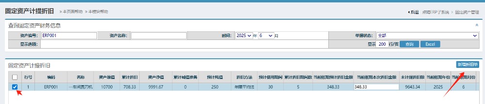 勾选上要生成折旧单资产明细,再点击新增折旧单按钮