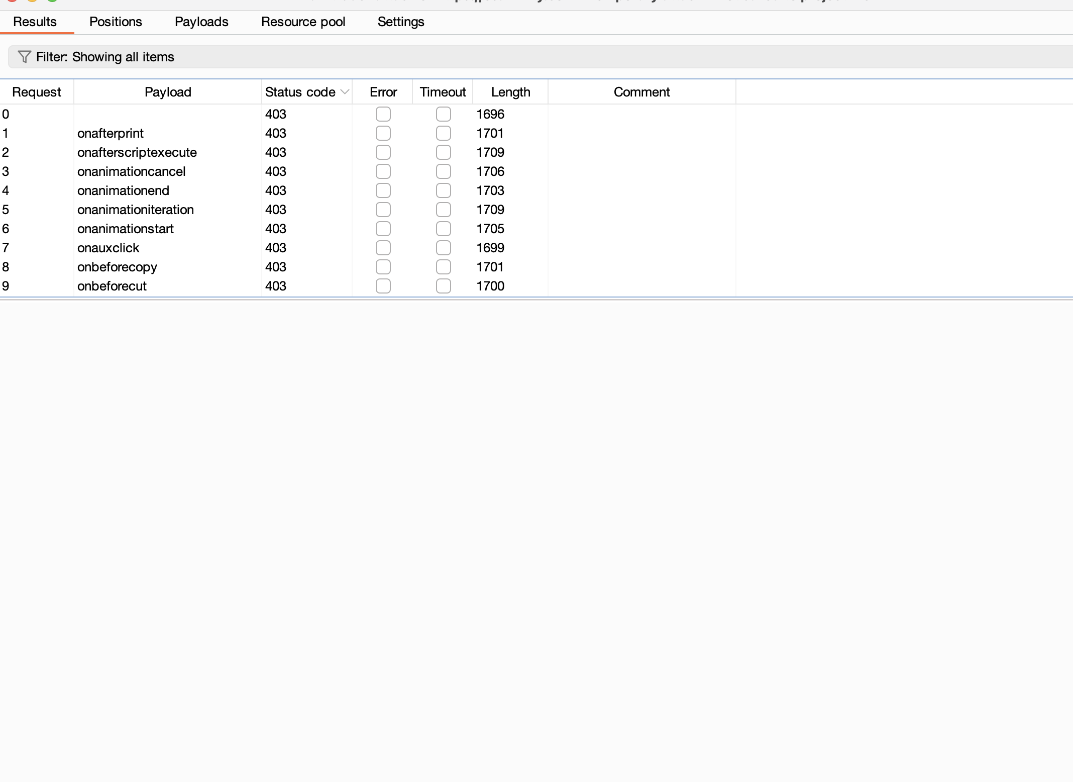 下一步按照往常一样 fuzz事件,结果全是403,这时候那没办法了那就不能用img标签了