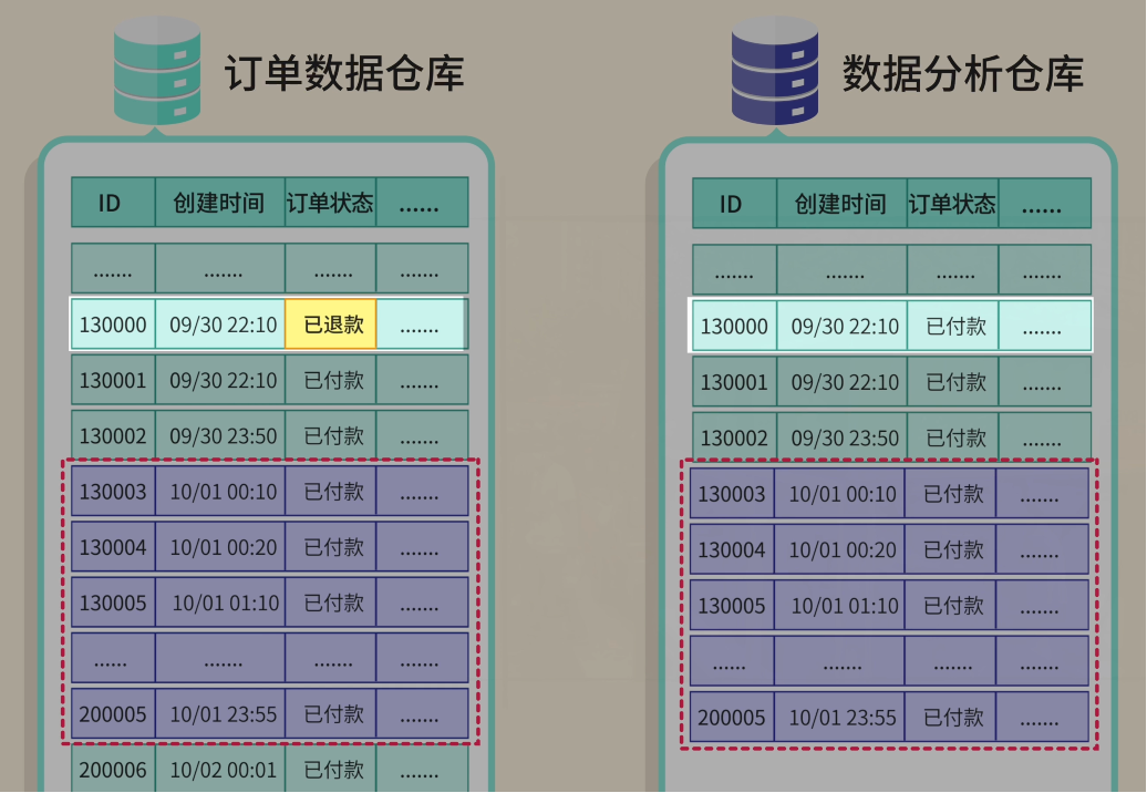 你心想:这还不简单吗?我写个定时任务,每天 把整个订单表的数据 全部查出来,然后 一股脑插入 到数据仓库!
