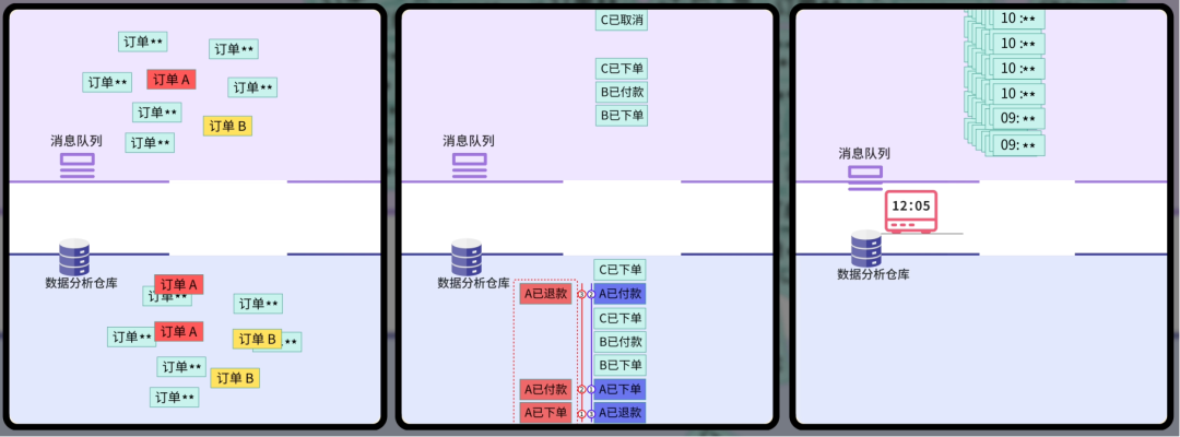 你正在和新来的实习生阿坤吹牛皮,没想到瞬间产生了大量订单,像洪水一般,让你的实时同步系统出现了各种异常: