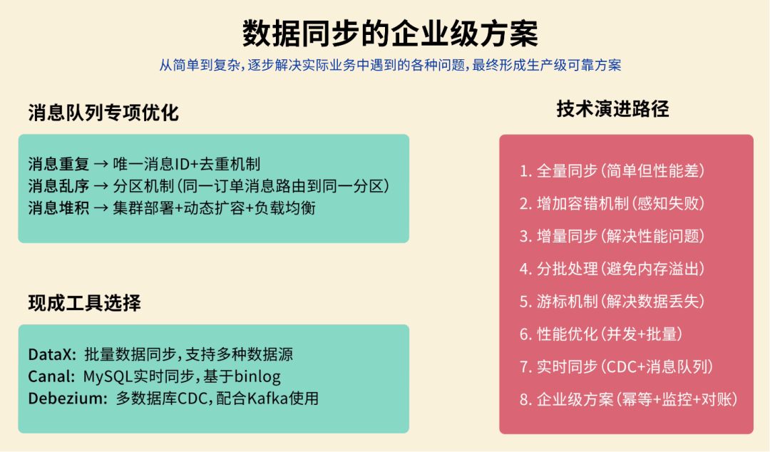 阿坤看着你的代码接着说:“不是哥,做个数据同步要这么麻烦么?DataX、Canal、Debezium,这么多现成的企业级数据同步工具你不用?非要自己写代码?”