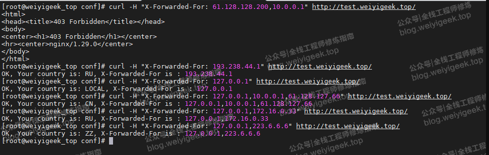 curl -H "X-Forwarded-For: 193.238.44.1" http://test.weiyigeek.top/