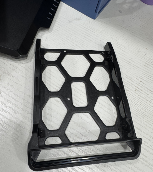 3.5寸硬盘,是通过两边的卡扣固定,如果是2.5寸硬盘,就是通过底部螺丝固定。