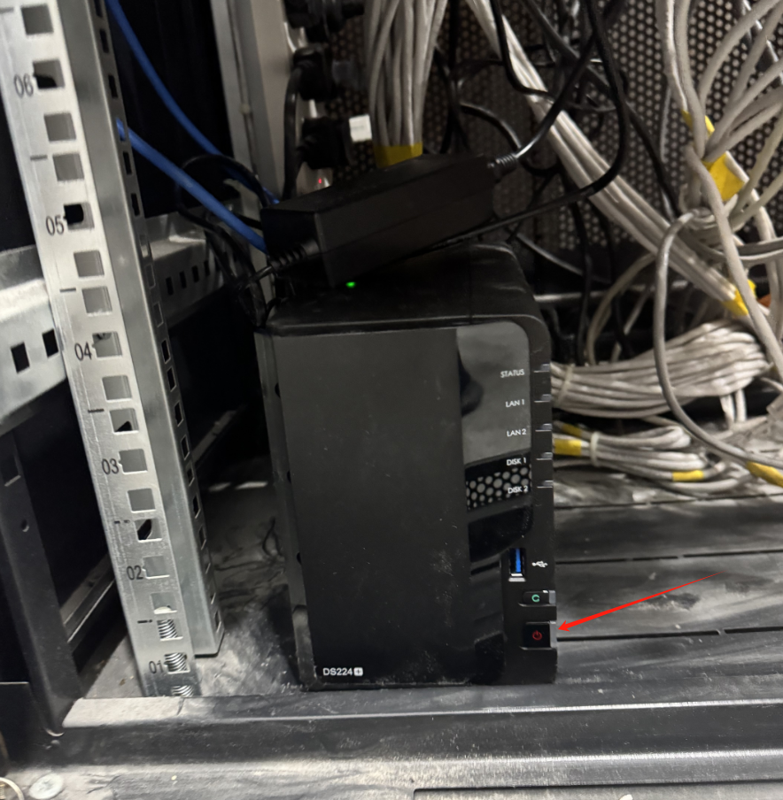将网线连接到公司的交换机,电源接电,然后,按NAS的开机,开机。  可以看到,现在NAS设备已经正常开机了。