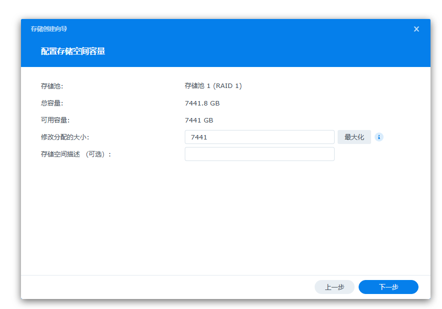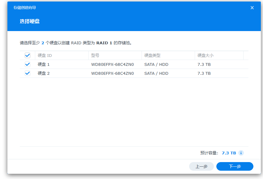 这时NAS设备的存储空间就划分好了,两块硬盘都已经添加完成,做的是RAID1。