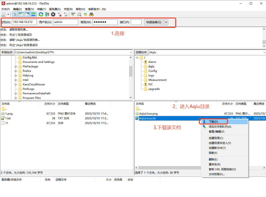 - RETR filename.txt:下载文件的命令。