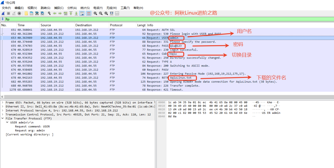 无论我们是网络工程师,还是运维工程师,我们应该都听过这么一个知识:FTP通信是不安全的,而SFTP通信是安全的!其原因就是FTP在传输数据(包括命令、密码、文件内容)时完全不加密,就像用明信片写信,所有信息在网络上都是“裸奔”的。而SFTP建立在加密的SSH连接之上,所有通信在传输前都被加密,就像把明信片放进了只有你和收件人才能打开的保险箱。本文就跟大家分享FTP与SFTP的区别,以及通过whireshark抓包工具进行分析FTP与SFTP两种传输协议,让大家真正搞懂为何FTP不安全,而SFTP是安全的!