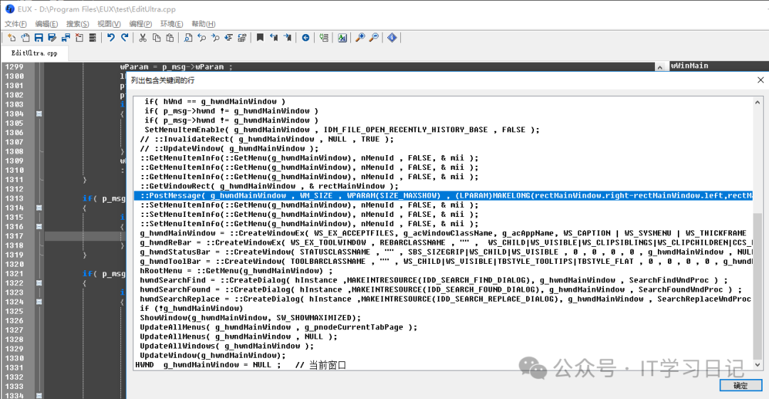• 查找与替换:可一键列出包含关键字的行,支持类似 grep XXX a.c 的功能